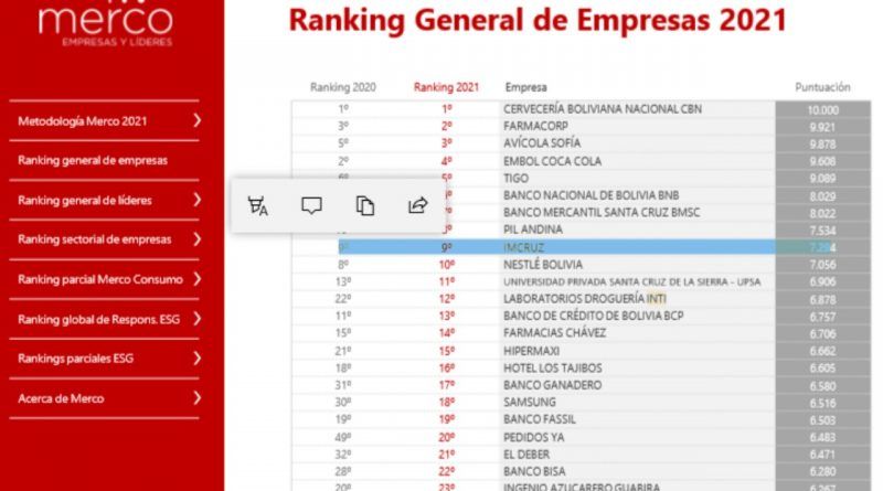 Imcruz es una de las 10 empresas con mejor reputación en Bolivia, según monitor Merco