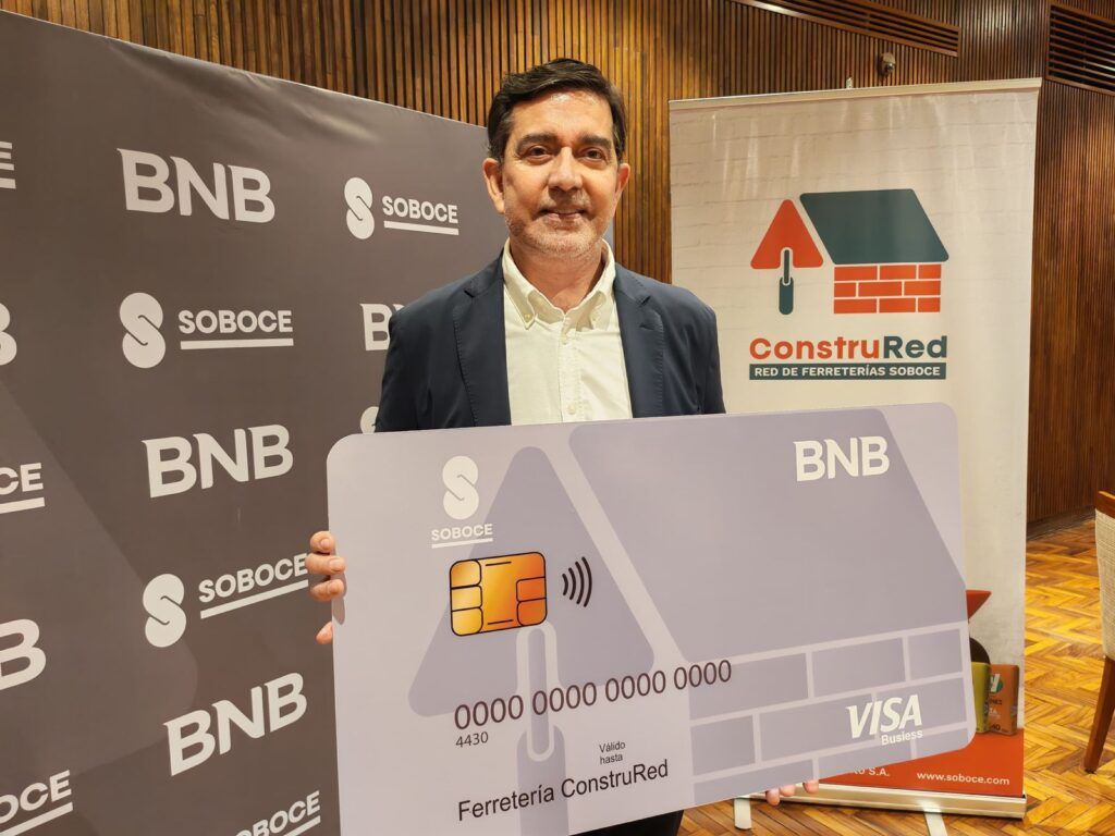“Es importante destacar que SOBOCE ha implementado recientemente una pasarela de pagos de última generación, disponible a través del siguiente link: https://play.google.com/store/apps/details?id=miscuentas.com.bo.miscuentas permitiendo así que todos sus clientes a nivel nacional y en especial sus clientes ferreteros de Construred puedan bancarizarse de manera digital, sin riesgos, de manera ágil y de manera segura, permitiéndoles realizar compras mediante cualquier método de pago (transferencia bancaria, QR, tarjeta de crédito, tarjeta de débito, etc). La tarjeta de crédito del BNB con tecnología de pago QR permitirá a los clientes ferreteros de Construred hacer pagos totalmente digitales y sin costo a través de la pasarela de pagos de SOBOCE” destacó Ricardo Barrientos, Gerente Nacional de Administración y Finanzas de SOBOCE.